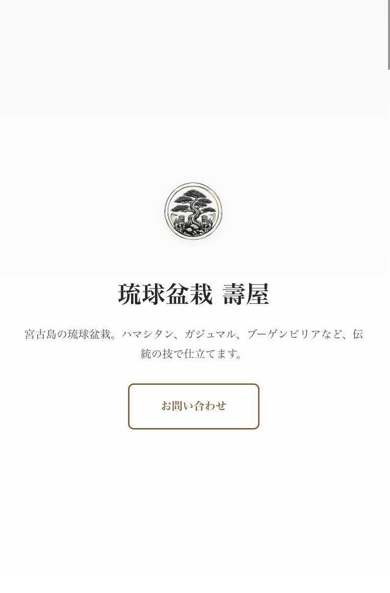 沖縄県宮古島で受け継がれてきた伝統的な盆栽を扱う専門サービスです。宿泊施設や飲食店など、その場所の魅力を最大限に引き出す盆栽の配置・空間演出をご提案。島の生産者の方々へしっかりと利益を還元しながら、宮古島の自然と文化が共鳴する豊かな空間作りをお手伝いします。